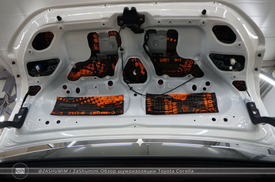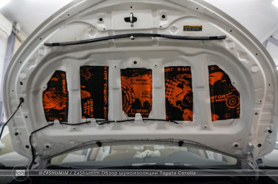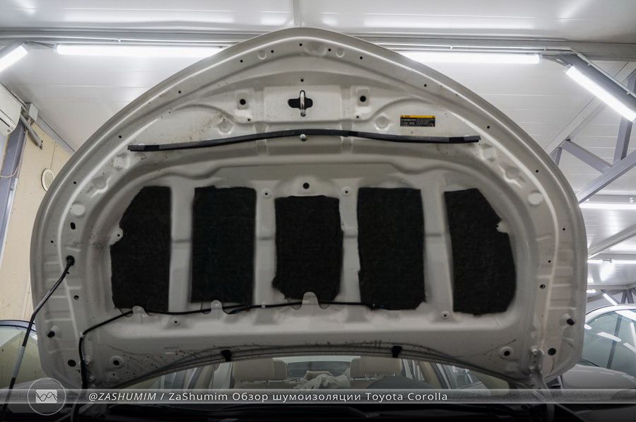 Под капотом Тойоты Королла, может не самый мощный двигатель, в силу класса автомобиля, но шум от него велик. Поэтому шумоизоляция капота тоже необходима, и даже очень важна!