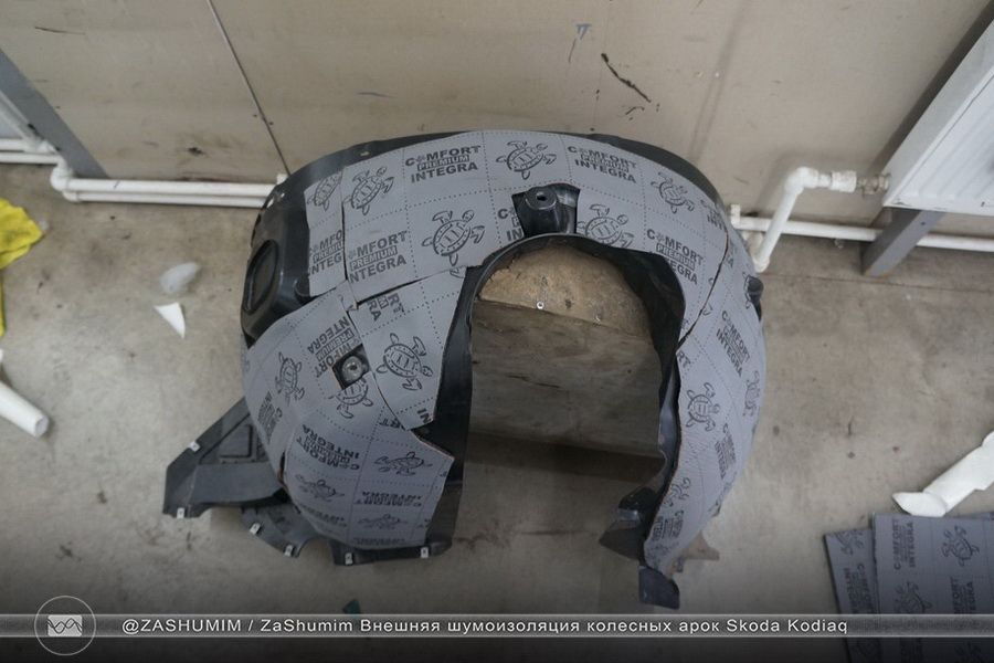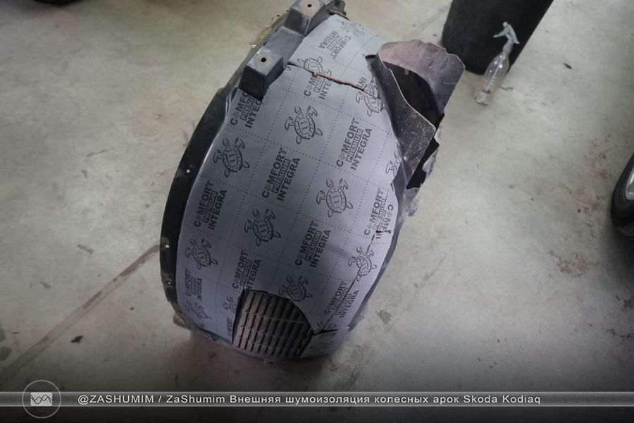 Так как задние подкрылки у нас тканевые, то Comfort Mat Integra наносится вторым слоем на вибродемпфер Comfort mat Dark
